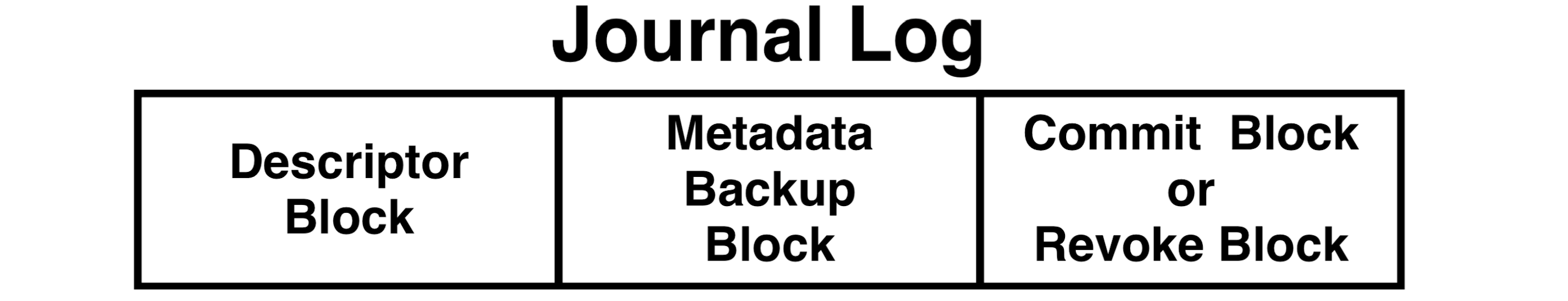 이때 하나의 journal log에서 Descriptor Block과 Commit Block 혹은 Revoke Block은 Block 하나의 크기를 가지며, Metadata Backup Block은 트랜잭션 발생 시에 변경되는 모든 메타데이터를 블록 단위로 백업하기 때문에 여러 개의 Block 크기를 갖는다.