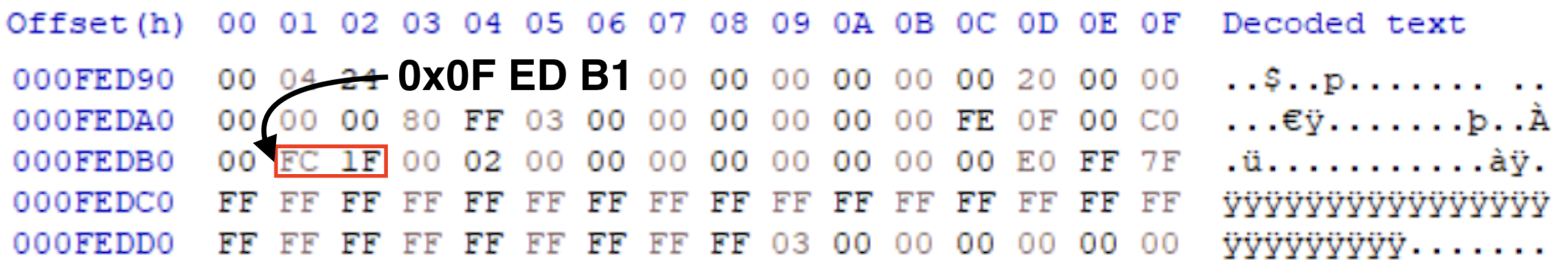 0xFC 1F = 0011 1111 1111 1000 (리틀엔디안 변환)