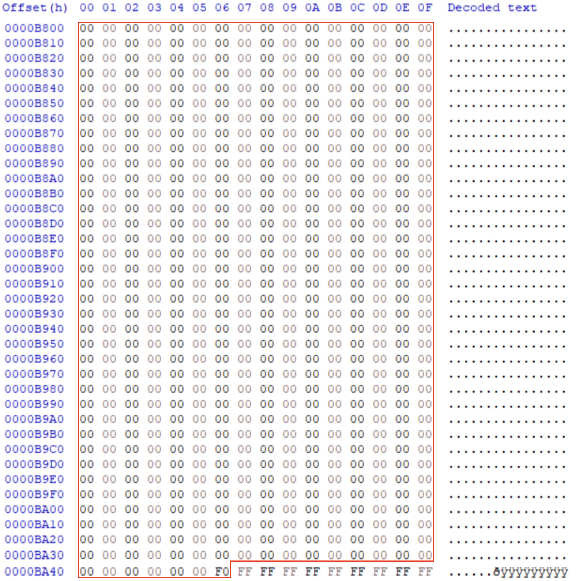 첫 번째 Data Block은 '0xFEDB1' + 2 부터 '0xFEDB2' + 3이 되고, 두 번째 Data Block은 '0xB800' + 0 부터 '0xBA46' + 4 영역이 된다.
