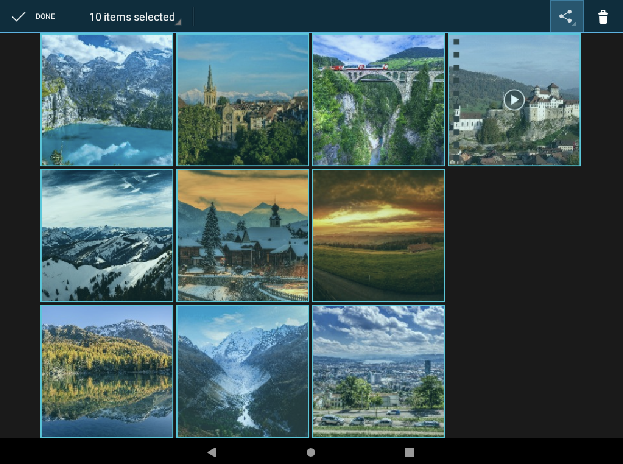 아래는 Android 기기에서 구글 드라이브에 업로드한 10개의 그래픽 파일을 다운로드하는 모습이다.
