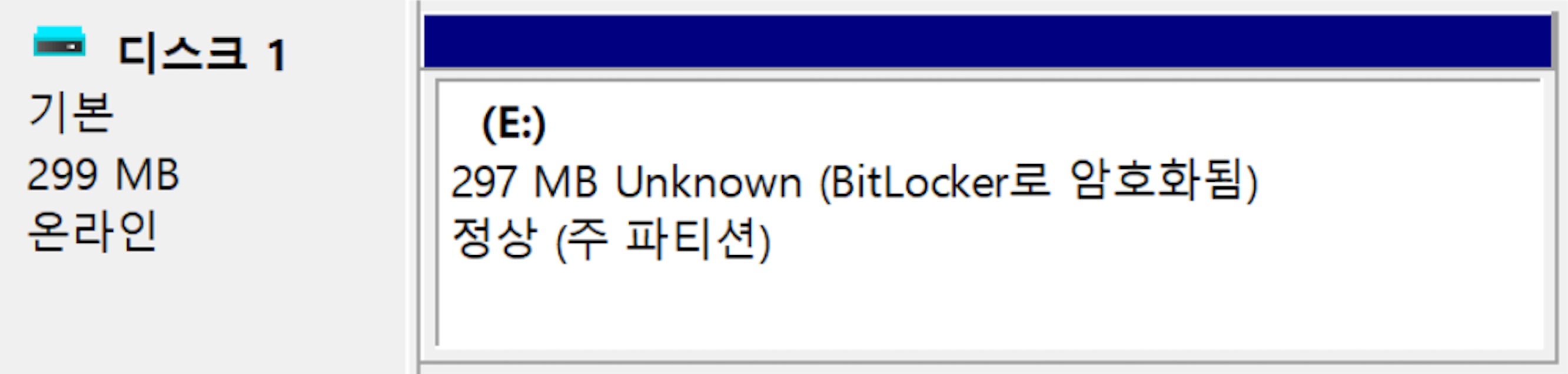 단일 파티션의 경우 300MB 크기의 디스크를 MBR로 초기화하고, NTFS를 단일 파티션으로 생성하였다. 이후에 디스크에 비트라커를 적용하였다.
