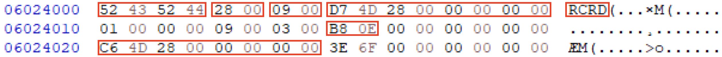0x00 ~ 03 | Magic Number ('RCRD') |