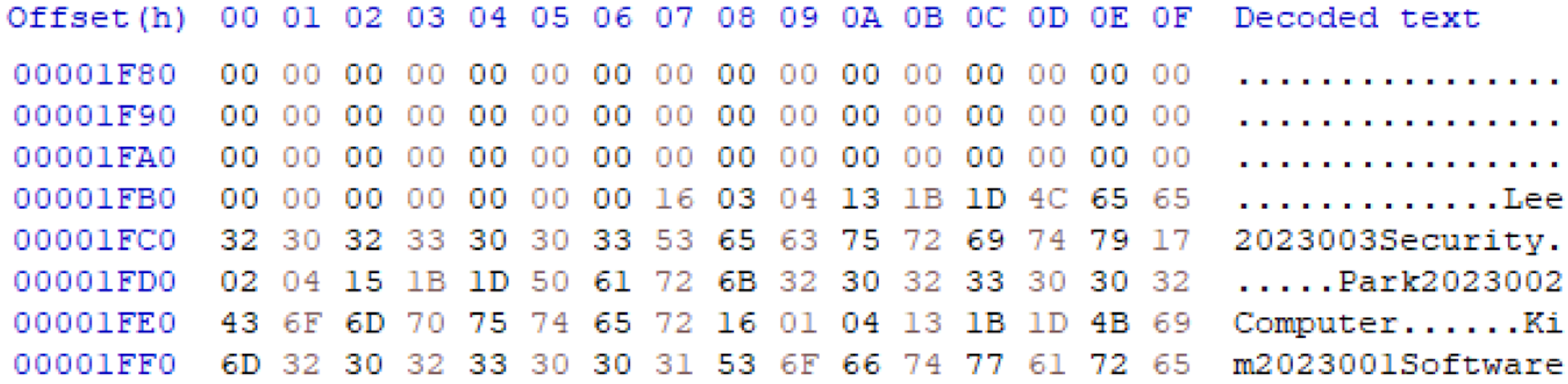 → Number of Record 값이 0x02인데, Cell Pointer가 4개 존재하는 것으로 보아, 4개의 Cell이 있었으나 2개의 Cell이 삭제되었음을 유추할 수 있다.