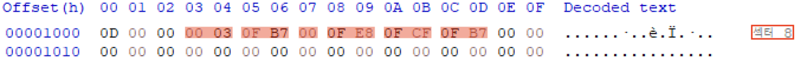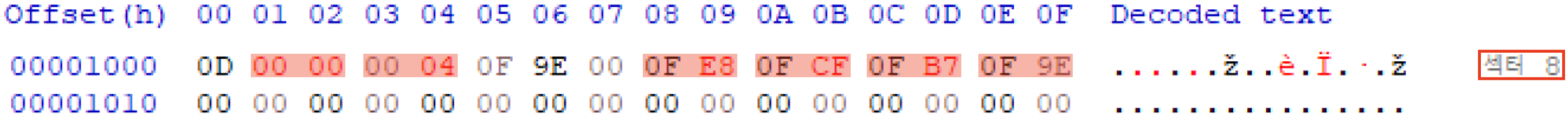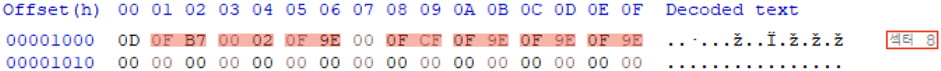 두 번째 가용상태 Cell의 첫 2 Byte: '0x0000'