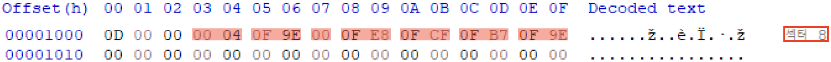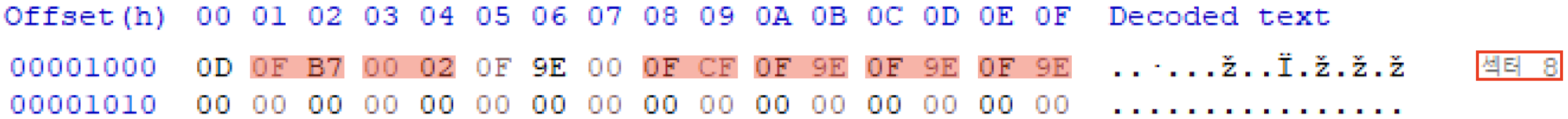 첫 번째 가용상태 Cell의 첫 2 Byte: '0x0FE8'
