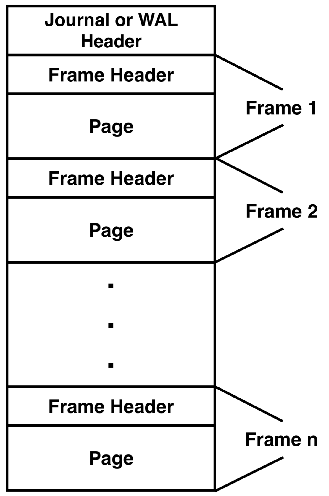 파일의 구조는 크게 Rollback Journal or WAL Header와 Frame 영역으로 나뉘고, 각 Frame은 Frame Header와 Backup Page 영역으로 나뉜다.