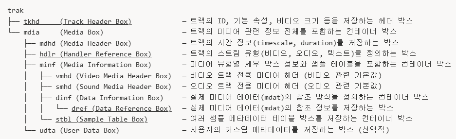 moov 는 여러 Track을 포함하기 때문에, moov 관점 Track Box 구조는 아래와 같다.
