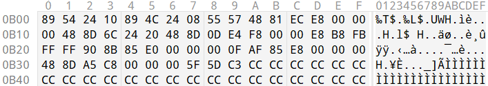 - 0x89 54 24 10 = mov dword ptr[rsp + 0x10] + edx