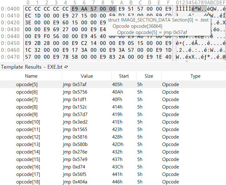 - Size of Raw Data : PE 파일이 Disk에서 File 형태로 존재할 때, 해당 Section에 할당된 File 내부의 Pysical Size이다. 해당 값은 File Alignment의 배수 값을 갖는다.