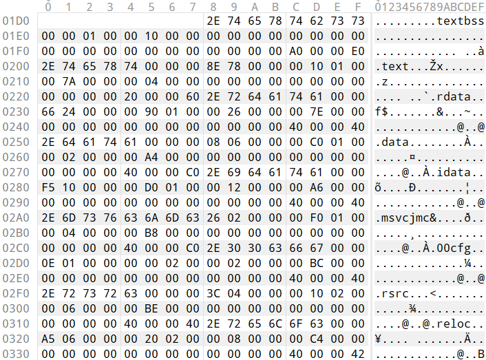 DWORD PointerToRawData; /* 14: File pointer to section data */