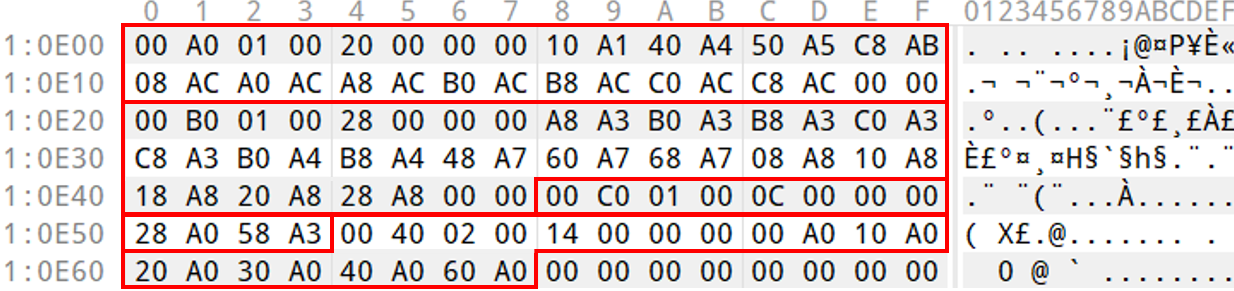 - 0x10E68 = 0x026000 - 0x026000 + 0x010E00 ~ 0x68
